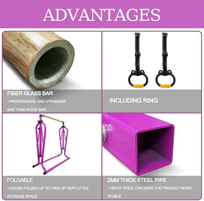 - ★Easy To Assembly★:Our professional grade gymnastics equipment is super easy to assemble and operate,Intuitively designed,The instructions are easy to understand,you can set it up in minutes regardless if you want to use it at home or in the gymnastics arena.This bar can withstand kids Swing, Climbing rope and ladder add one,Is the best gift for children at child/teenager/junior's birthday, Halloween, Thanksgiving Day , Christmas and so on.