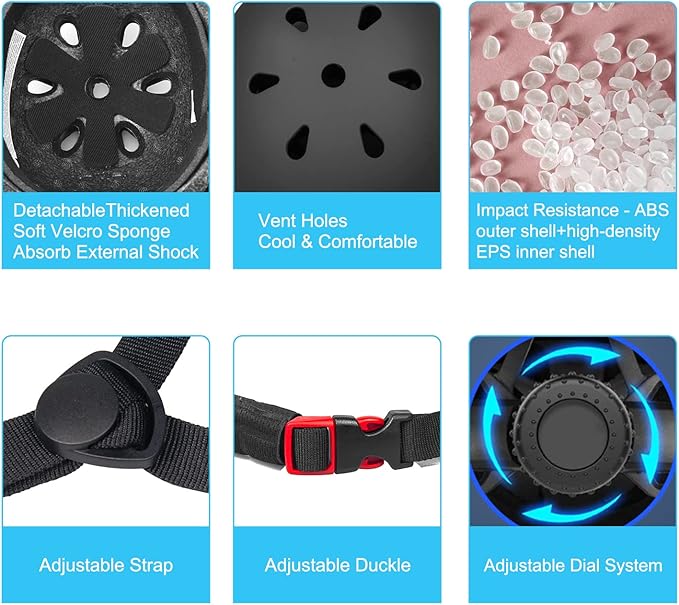 - SAFETY PROTECTION: The kids bike helmet use sturdy ABS outer shell and EPS foam inner which can absorb external pressure in sporting activities, and it can reduce the risk of injury. when biking, rollerblading or playing. The kids helmet makes your kids more happy on play.
