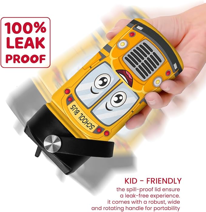 School Bus Water Bottle - Kids Water Bottle with Straw Lid - 12 Oz Insulated Stainless Steel Water Bottles for Kid Boys - Travel Cup for School Sports