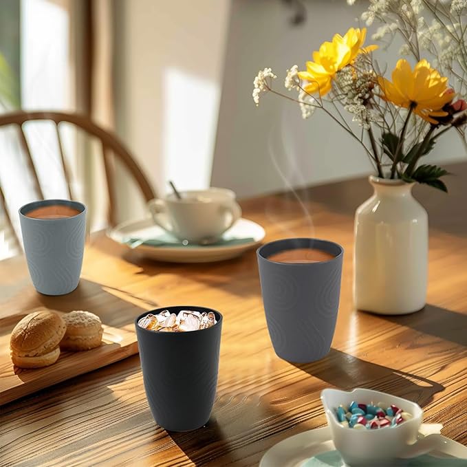 - 【Versatile Cups Set】 BUSOKIP 12 oz kitchen cups set are available in different colors to match different occasions, decoration style or personal preferences. This set includes black, dark grey and grey. They can not only be used for cold and hot drinks but also as gargle cup or toothbrush holder. If you have any questions with our plastic cups, feel free to let us know and we will try our best to help you.