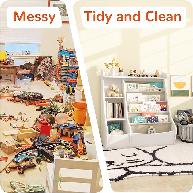 - Good Habits of Organization and Tidiness: Kids bookcase helps children organize their rooms neatly and develop good habits of organization and tidiness. So that you don't have to worry about your kis throw away toys all over the room. Get rid of the hassle of messy rooms.