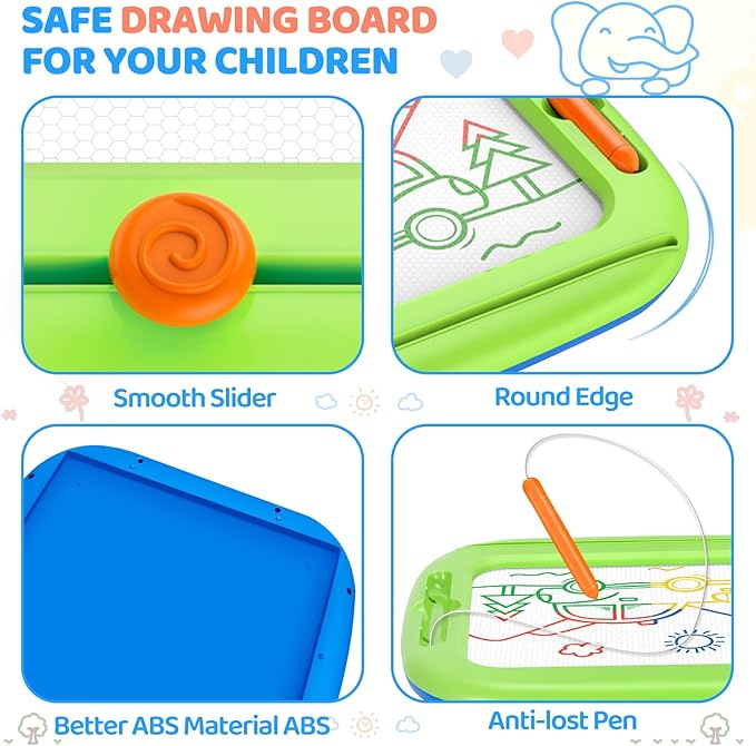 - Deluxe 2 Packs Magnetic Drawing Boards: Our toddler toys set contains two pieces of doodle board. Featuring a spacious 9-inch drawing area with four vibrant color zones, our drawing doodle board encourages imaginative play and color recognition. The kids drawing tablet provide an excellent platform for toddlers aged 1-3 to practice drawing, and writing, fostering their creativity and cognitive development.