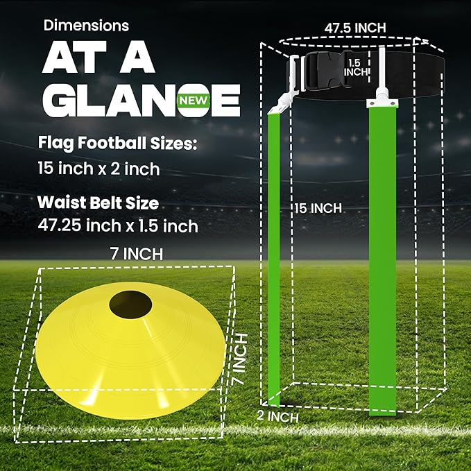 - Complete Set: The Flag Football Set includes all the essentials for a thrilling game, with 6 player flag belts and flags, and 4 disc cones for training and field marking.