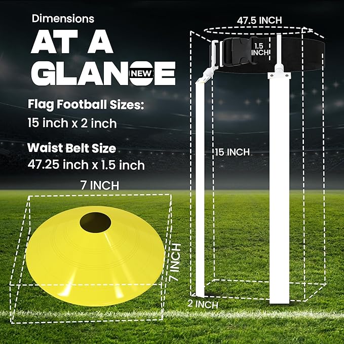 - Complete Set: The Flag Football Set includes all the essentials for a thrilling game, with 6 player flag belts and flags, and 4 disc cones for training and field marking.