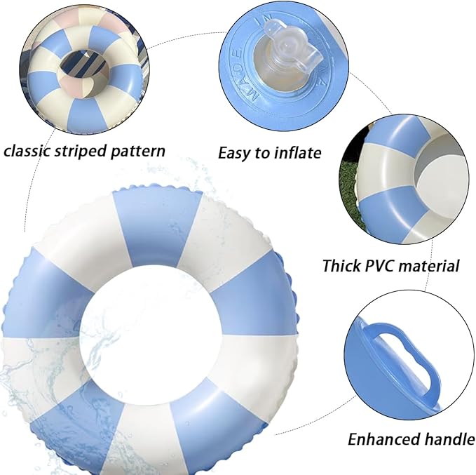 - 【Cute Adults Swim Rings】With a classic stylish striped design, this inflatable pool floats add a romantic and playful touch to your summer pool parties and water gatherings. Ideal for beach and pool photos, so vibrant and cheerful for a child!