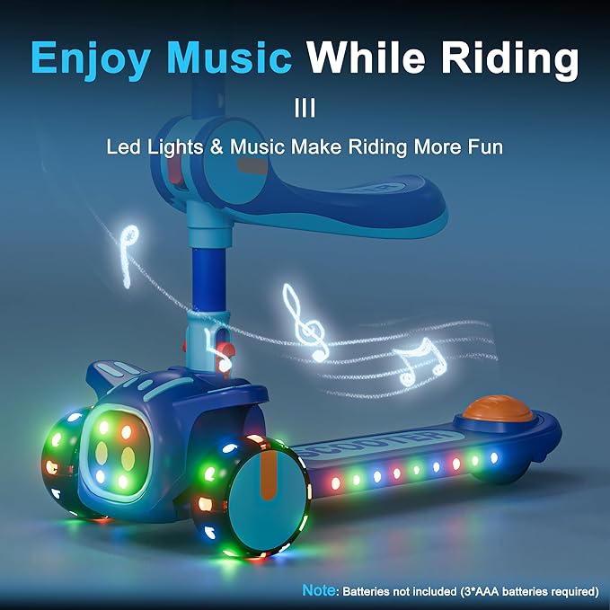 - Enjoy Music While Riding: Elevate your child's riding experience with built-in music and lighting modes. Our children's scooter offers exciting music and visual features, adding extra fun to every ride.