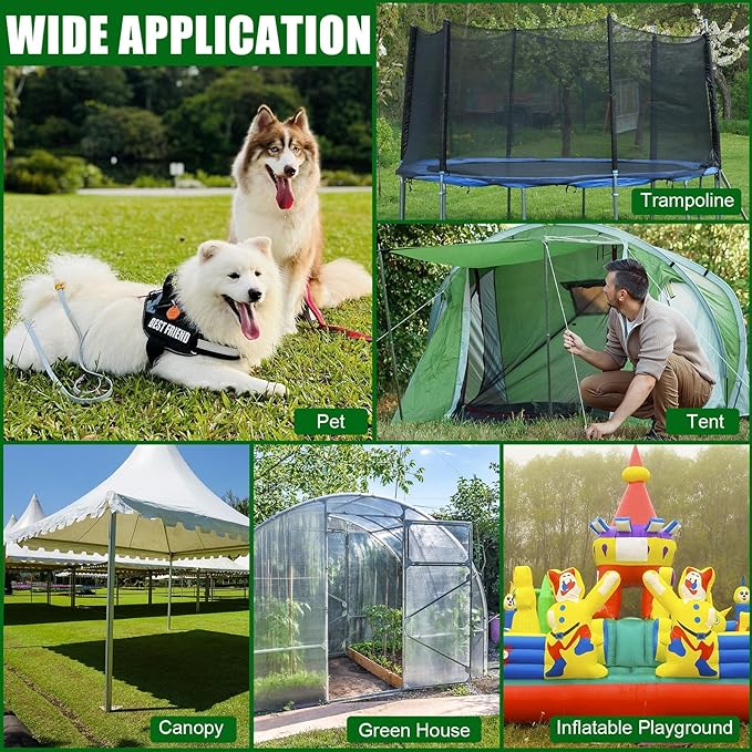 - Wide Applications: our tree straps for staking can be applied not only for tree straightening and plant support, but are also use for tent, tarpaulins, canopies, picnic mats, inflatable decorations, shelters, swing sets, garden wire, plant wire, climbing, Wooden stake, landscape stakes, snow stakes, etc. use these stakes in mud, sand, grass soil to withstand strong winds