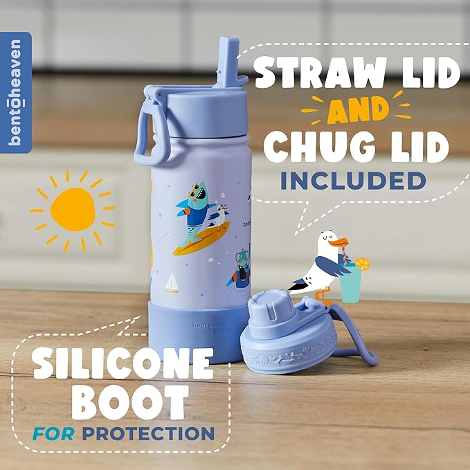 - Special Feature : 2 lids included (Chug and Straw), Artist-drawn characters, Food-safe materials, Keeps drinks cold or hot for hours, Silicone boot protects from dents & reduce noise 2 lids included (Chug and Straw), Artist-drawn characters, Food-safe materials, Keeps drinks cold or hot for hours, Silicone boot protects from dents & reduce noise