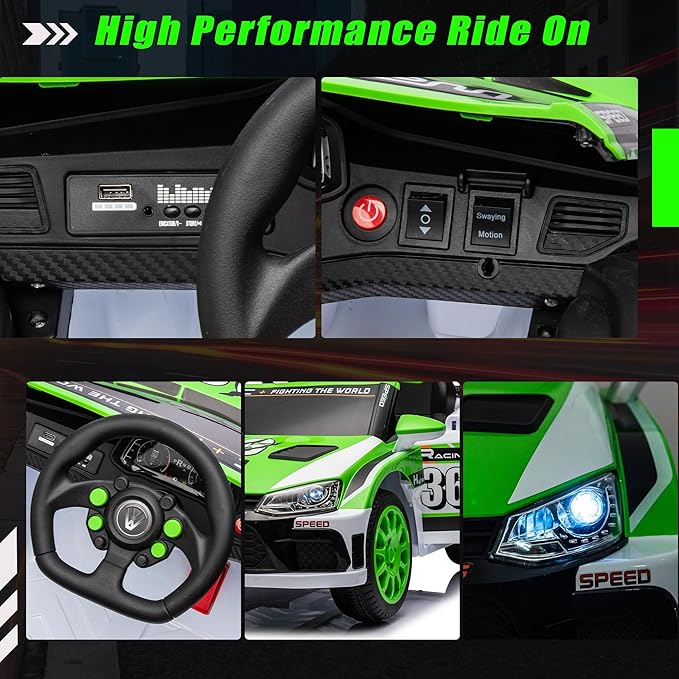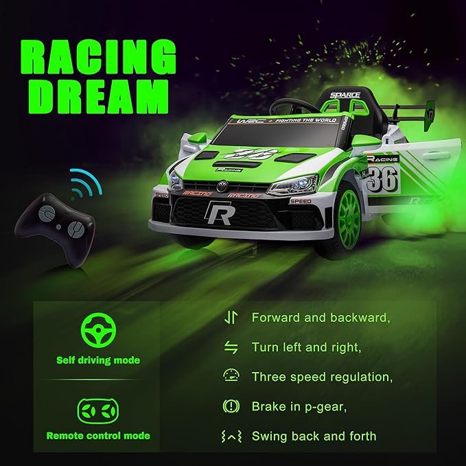 - Dual driving Modes ride on racing car has two control modes that can be freely selected. Children can independently operate electric cars through the pedals and steering wheel to exercise physical coordination and responsiveness, thereby enjoying a true driving experience. The children's car is equipped with a 2.4GHz remote control, which allows parents to take over control at any time, ensuring that their children have a safe and enjoyable driving experience and enjoy happy times with them.