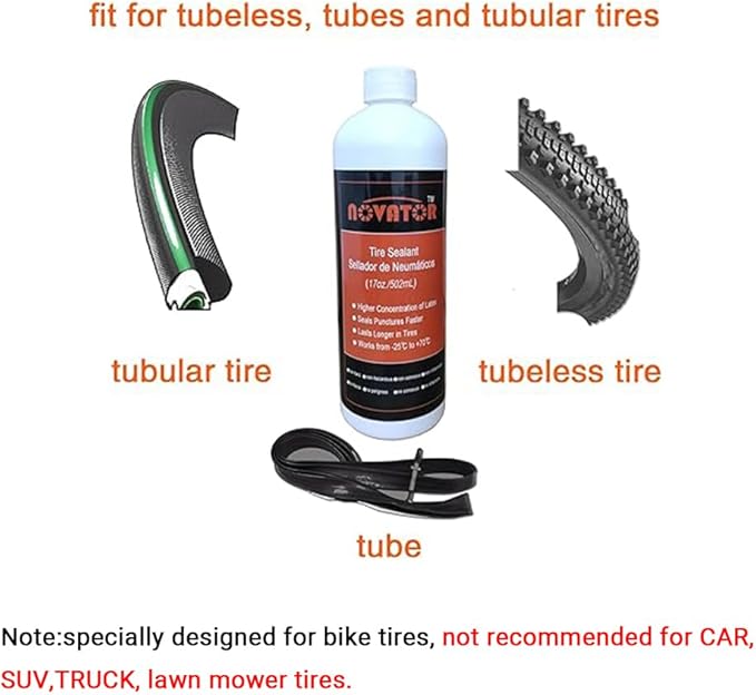 NOVATOR Endurance Bike Tire Sealant for Tubeless, Tubulars, Tubes, Seals Faster, Lasts Longer, Micro-Fiber for MTB, Road, Gravel Bicycle Tires