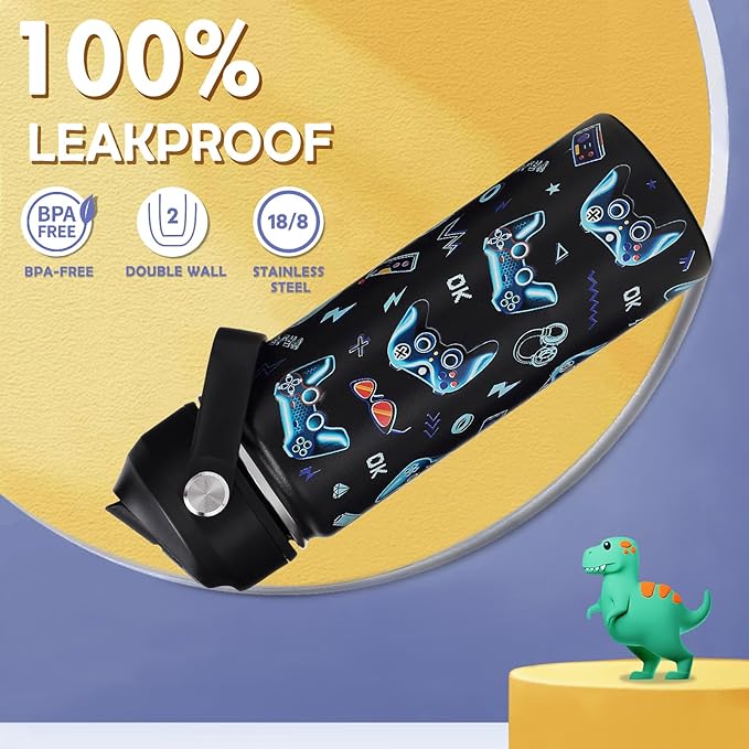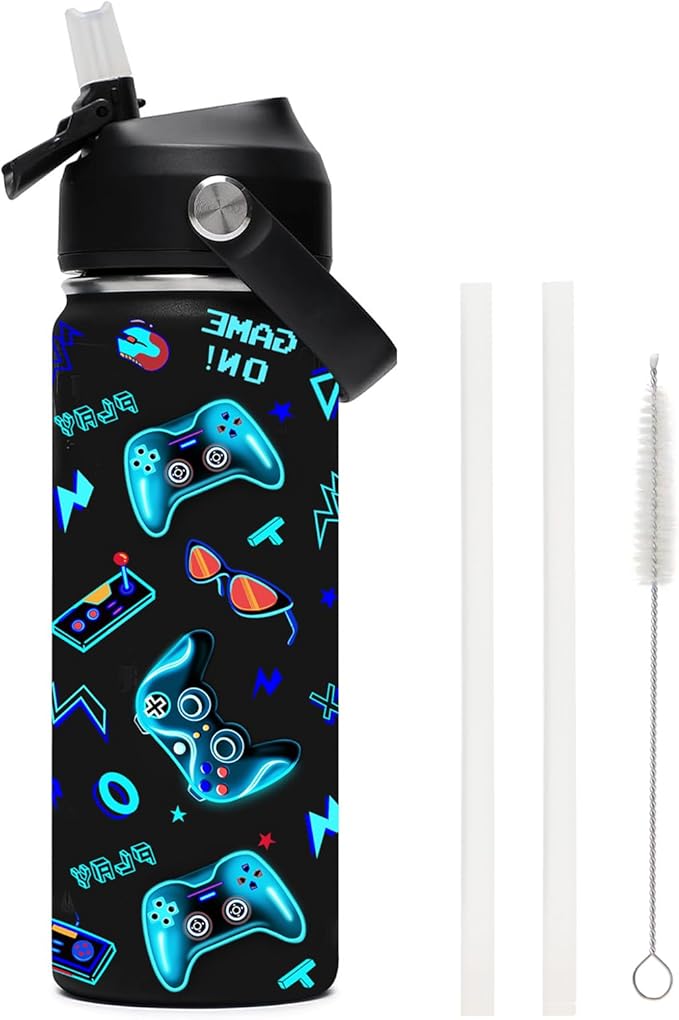 18oz Kids Insulated Water Bottle with Straw Lid - 18/8 Stainless Steel Kid Cup BPA-FREE Travel Tumbler Double Wall Vacuum Leak Proof Portable Toddler Water Bottle (Game)