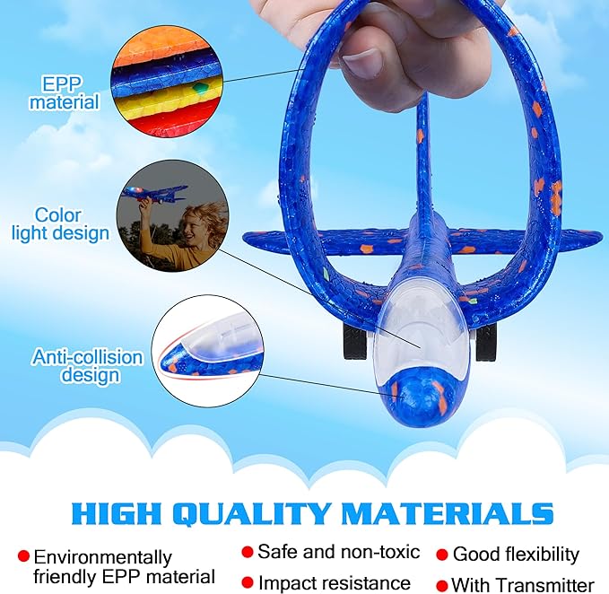 - Safe & Fun for Play - This foam airplane is made of molded foam, lightweight, safe, bendable, and will not harm kids' hands or feet, and comes with colorful LED lights, so kids can enjoy the fun of flying toys even at night. It allows your child to leave the video game, relax with friends and family, and enjoy a good outdoor time