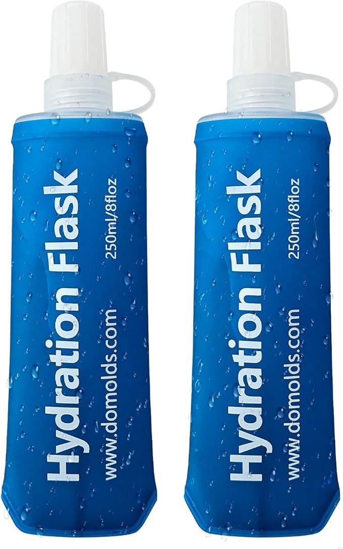 2Pcs 250ml Soft Flask Folding TPU Hydration Flask Running Water Bottle(8.8 oz), Water Pouch for Running Vest, Hiking, Cycling (Blue 250ml)