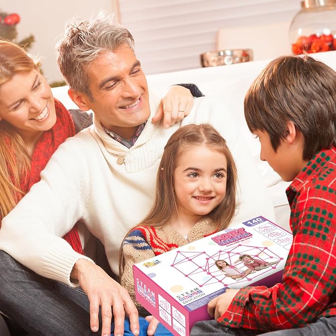 - Build Anything You Imagine - Our 140 Pieces magic-making set allows your baby girl to build their very own fort such as a dream playhouse,cave, tunnel, teepee, playhouse, space ball, igloo, castle, tent, giant rocket, and more, just add a blanket or lights to create a hideaway place to play and read! All forts are big enough for more kids to get in. Building a large and complex fort can be full of challenges and bring endless fun to kids, even parents. Excellent way to spend time with your kids.