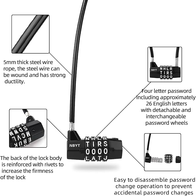 - NBYT Combination word Padlocks is a high-quality product with a zinc alloy lock body and a steel wire rope shackle that provides maximum security for your valuables. It is suitable for use as a cabinet lock, refrigerator lock, and on small fences and sheds.