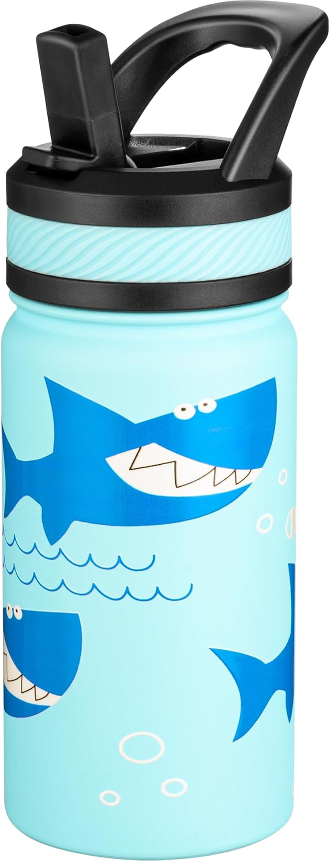 Fanhaw 14 Oz Kids Insulated Water Bottle with Straw - Stainless Steel Double Wall Vacuum Cup, Leakproof, BPA Free, Suitable for Boys and Girls(Pale Blue - Big Shark)