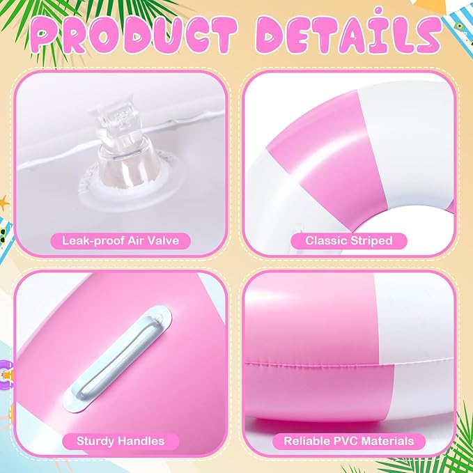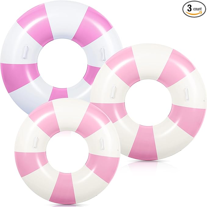 - Sleek Design and Convenient Handles: the swim ring with handles set don these classic striped patterns in refreshing pink and white which will surely appeal to most eyes; More than its style, pool inner tubes come with handles that provide a reliable layer of safety when floating on the water, making your summer float at ease