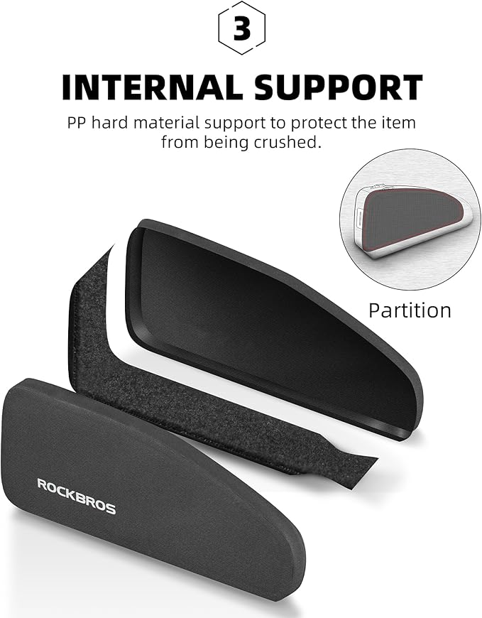 - ADDITIONALS: The bike pouch comes with dual zippers, enabling you to conveniently separate items and prevent sharp objects from scratching your phone. Additionally, the removable divider offers customization options, allowing you to organize the interior according to your specific needs.