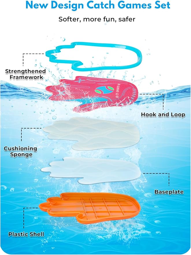 - Sturdy & Waterproof: Built with a 5-layer waterproof structure, these toss and catch paddles are 3× more durable than typical sets. Perfect as kids pool toys, toddler pool toys, or lake toys, and excellent for a fun beach ball game or yard play