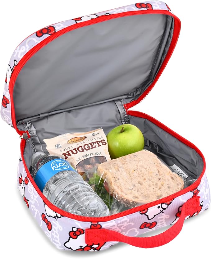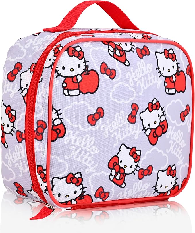 - OFFICIALLY LICENSED HELLO KITTY MERCHANDISE: Elevate Snack Time with Our Officially Licensed Sanrio Hello Kitty Lunch Box for Kids. Adorned with the Iconic Hello Kitty Character, This Lunch Bag Is Crafted from Durable Cordura Polyester, Ensuring Long-Lasting Quality and Making It a Perfect Hello Kitty Gift for Fans of All Ages.