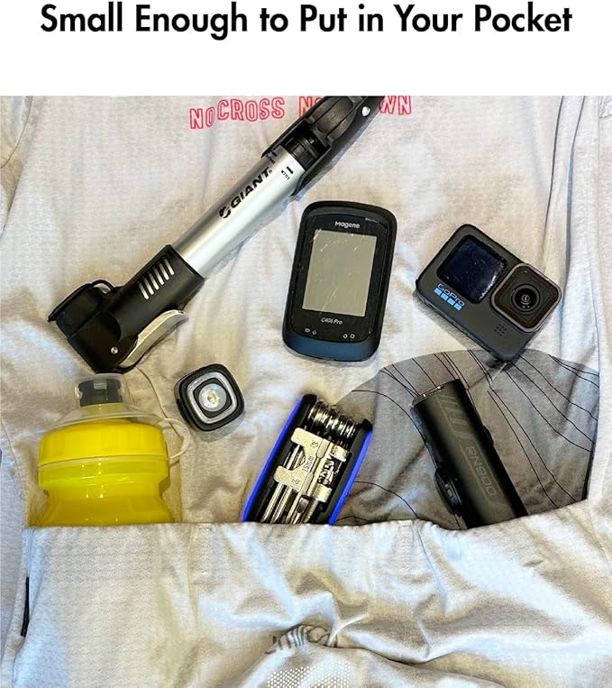 - Easy to Carry: Only at 3.7*2.1*1.1 inches (L*W*H) when folded, mini enough to throw into saddle bags or pockets, portable to carry anywhere, and not add load to cyclists. It weighs just 0.4 pounds.