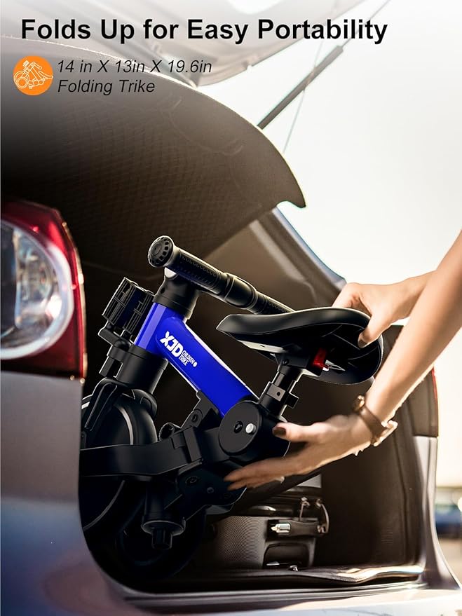 - ONE-TOUCH FOLDING FUNCTION: One button folding opens the tricycle body and folds it into a compact size for easy transportation and storage with the push of a button. Compared with other tricycles, XJD tricycle has extra handlebar seat lift function, one button folding function