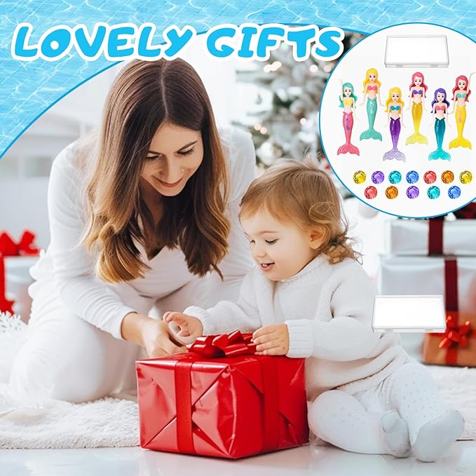 - Safe and Durable: Crafted for endless underwater adventures, these mermaid toys and diving gems are made with child-safe materials, ensuring long-lasting fun for kids aged 5 and up.