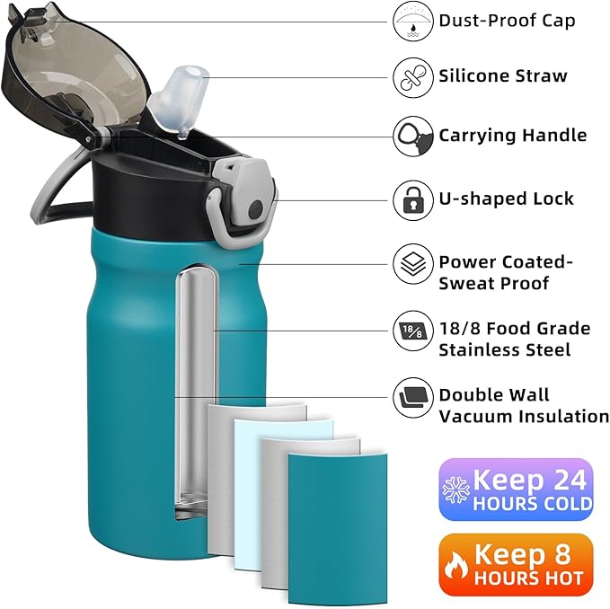 - Stainless Steel Water Bottles: Made Of Premium 18/8 Food Grade Metal, Durable And Resistant To Corrosion, Adopt Double Walled Vacuum Insulation Design Keeps Your Beverages Hot 8 Hours Or Cold For 24 Hours