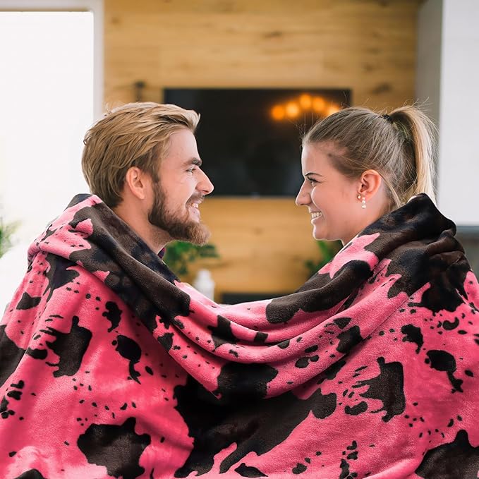 - COW PRINT BLANKET- The pink cowgirl blanket is vacuum packed, please wash the cow print couch throws once to air dry for a period of time when you receive the cow themed throw blanket, the cow print fleece throw will become fuzzy. The cow print blankets and throws are machine washable in cold water, on a gentle or delicate cycle. The cow print soft blanket does not bleach. Cow print blanket throw is easy to store and high color fastness, very easy to care for.