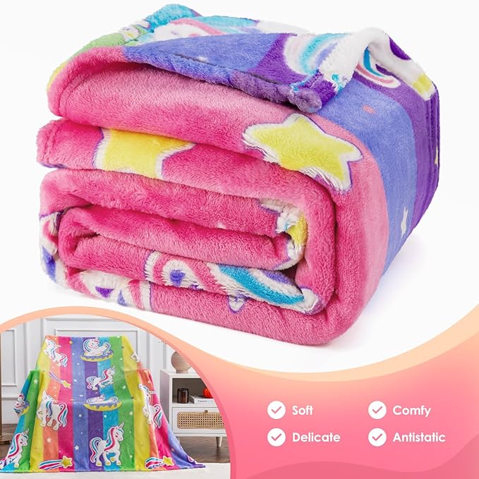 - Special Feature : Christmas gifts for girls, Birthday gifts, Easter gifts, Girls toys, girls blankets, gifts for kids girls ages 1 2 3 4 5 6 7 8 9 10 11 12 13 years old teen daughter teenager child, Rainbow unicorn decor for girls room; Girls birthday, Christmas, Halloween party decorations, Rainbow unicorns glow in the dark throw blanket, Soft, comfortable, lightweight Christmas gifts for girls, Birthday gifts, Easter gifts, Girls toys, girls blankets, gifts for kids girls ages 1 2 3 4 5 6 7 8 9 10 11 12 13 years old teen daughter teenager child, Rain… See more