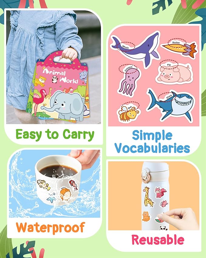 - Portable Design: Sticker books for toddler 2-4 year portable with handle and storage for stickers, can be used on smooth surfaces like windows, water bottles, and more.