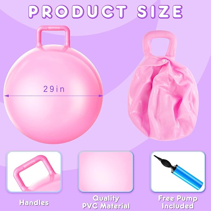 - Size Details: the diameter of each bouncing ball is about 29 inch/ 74 cm when the air is inflated to the full; A little air will leak when removing the filler plug; There is a handle above the ball that can be grasped