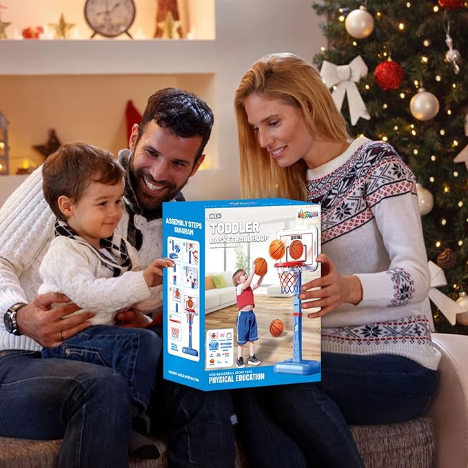 - 【Ideal Gifts for Toddler】 The adjustable height basketball hoop can grow with kids and increase their interest in sports. Kids can play basketball indoors or outdoors with parents or friends, making every little basketball player's dream come true! This toddler basketball game set is ideal as Christmas birthday gift for 3 4 years old boys and girls.