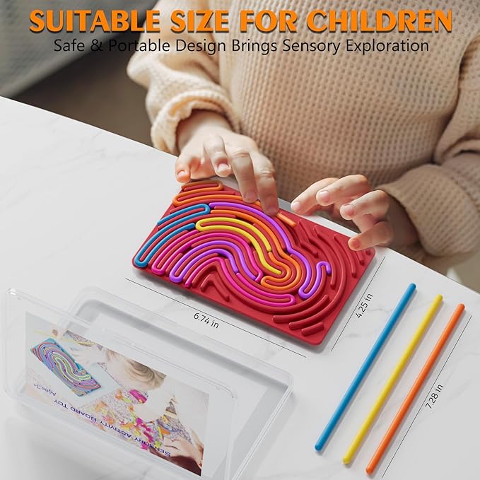 - 【Safe And High Quality】The sensory activity board toys are made of high-quality non-toxic silicone, and the materials are all high-quality, durable and odorless, and have obtained the Children's CPC certification to ensure safety for children. The two sides of the sensory board are designed with different patterns, providing children with two ways to play. If the toy is dirty, you can wash it with water or washing machine.