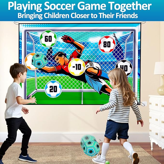 - High Quality & Portable Goals:Our soccer goals for kids 8-12 is made of soft fabric,don't have to worry about your child's safety while playing, basically it sticks nice, which can exercise children's hand-eye coordination, motor skills. football game is light in weight, portable, kids can enjoy the soccer football party favors time anytime and anywhere, It folds up nicely for storage. Ideal football christmas birthday party,soccer birthday party decorations, football decorations for home, football & soccer toys for boys 6-8 8-12.