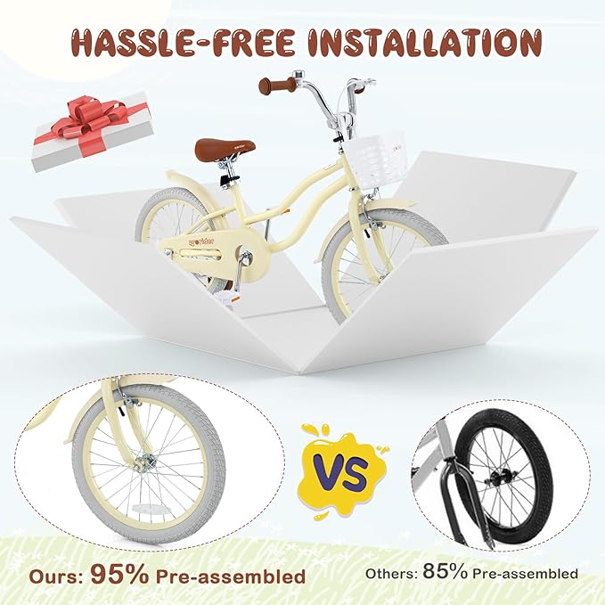 - [ 95% Pre-assembled ]: Different from other 85% pre-assembled bikes, ours with 95% pre-assembled design ensures quick and hassle-free installation. You can finish installation more efficiently with the detailed instructions. Plus, assembly tool kit comes with the package.
