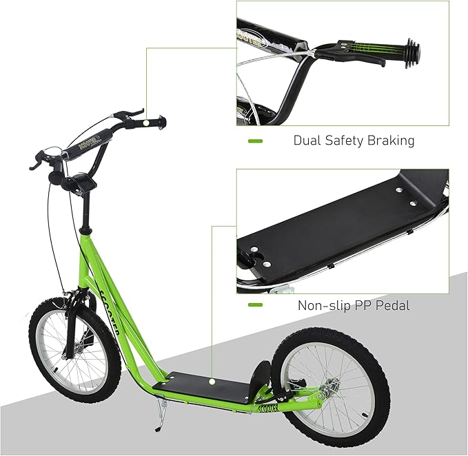 Aosom Youth Scooter Kick Scooter for Kids 5+, Max Load 220 LBS., with Adjustable Handlebar, 16" Inflatable Wheels, Dual Brakes