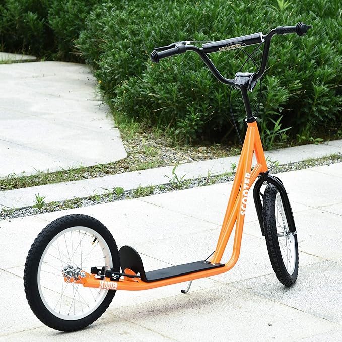 Aosom Youth Scooter Kick Scooter for Kids 5+, Max Load 220 LBS., with Adjustable Handlebar, 16" Inflatable Wheels, Dual Brakes
