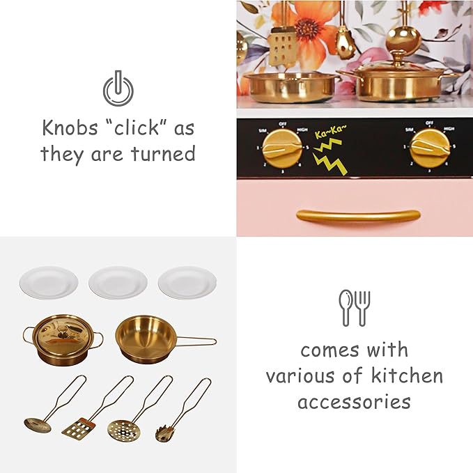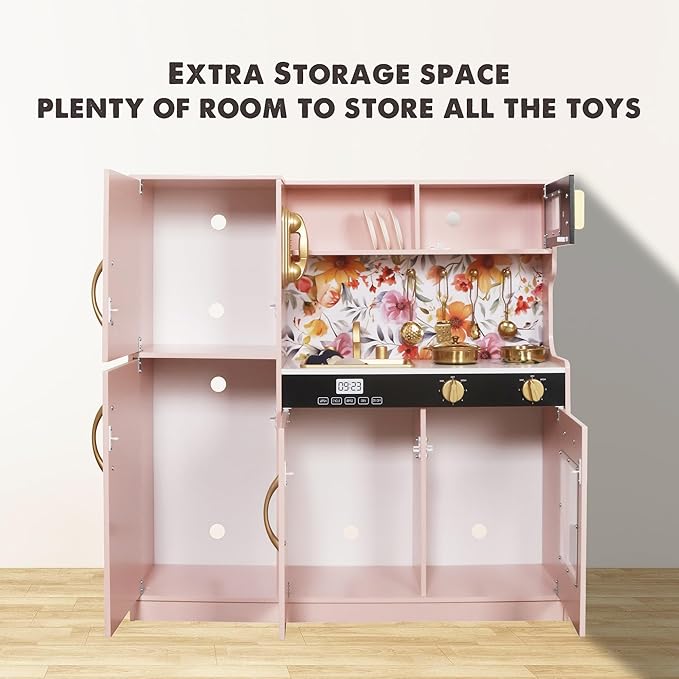 - 🎁Geat gift- Not only provides fun playtime for young children, but is also important for education. The perfect play kitchen for 3-8 year olds is ideal for creative role play toy and the perfect gift for kids.