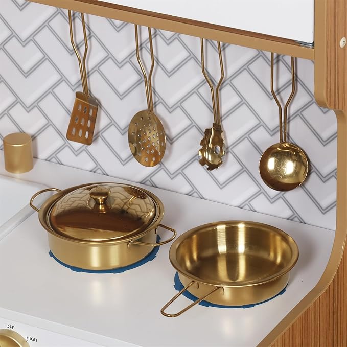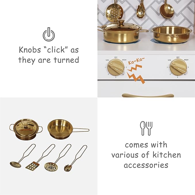 - 🎁Geat gift- Not only provides fun playtime for young children, but is also important for education. The perfect play kitchen for 3-8 year olds is ideal for creative role play toy and the perfect gift for kids.