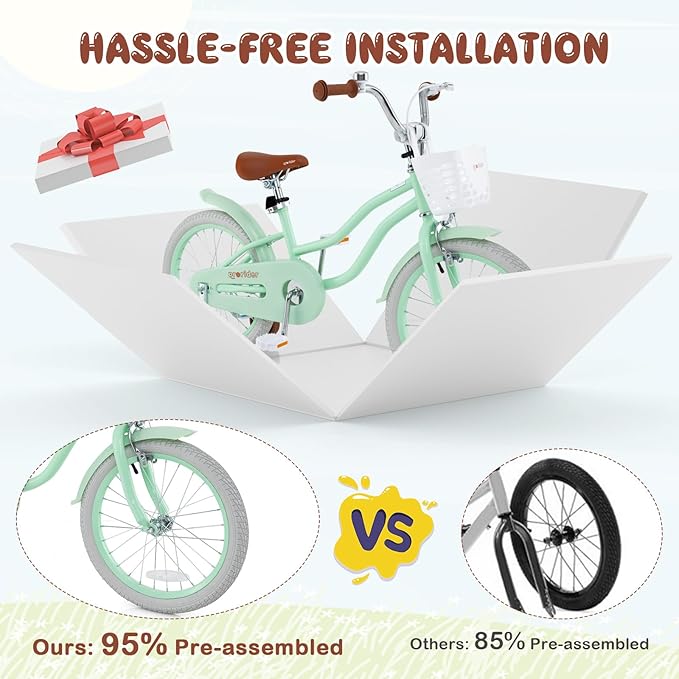- [ 95% Pre-assembled ]: Different from other 85% pre-assembled bikes, ours with 95% pre-assembled design ensures quick and hassle-free installation. You can finish installation more efficiently with the detailed instructions. Plus, assembly tool kit comes with the package.