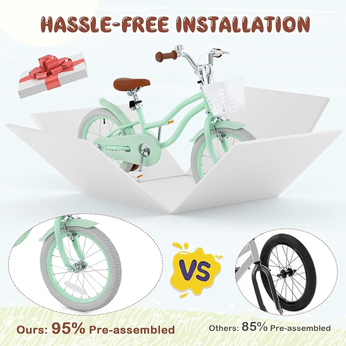 - [ 95% Pre-assembled ]: Different from other 85% pre-assembled bikes, ours with 95% pre-assembled design ensures quick and hassle-free installation. You can finish installation more efficiently with the detailed instructions. Plus, assembly tool kit comes with the package.