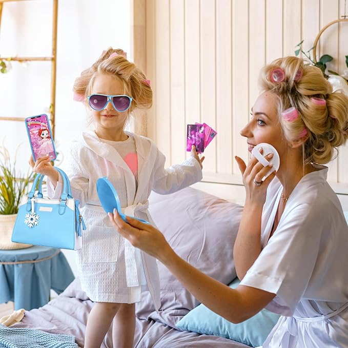 Shemira Play Purse for Little Girls, Princess Pretend Toys for Girls 3 4 5 6 7 8 Years Old, Christmas & Birthday Gift for Kids Age 3-5 4-6 6-8, Toddler Purse with Accessories, Kids Toy Purse, Blue