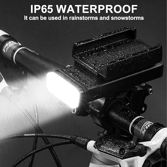 - 【Aluminum Enclosure & IP65 Waterproof:】 Our waterproof bike headlights are made with high strength aluminum alloy and reinforced with acrylic on the interior. Each waterproof bicycle light has undergone thousands of stability and light tests to ensure its durability and stability when used for biking. With a waterproof rating of IP65, you can trust to use it in rainy or snowy conditions.