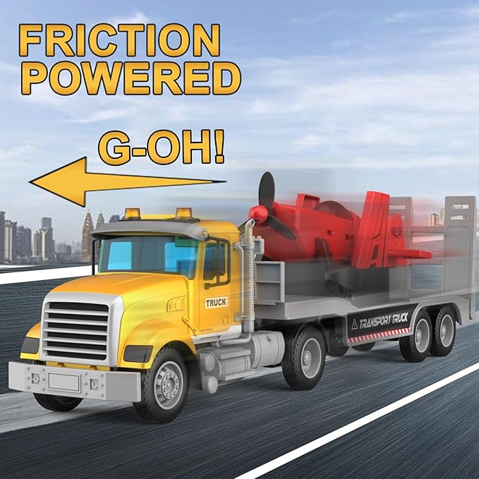 Large 22" Semi Police Truck Toy with Propeller Aircraft Car Toys for Kids Toddlers, Christmas Birthday Gift for Boy Girl Child 3 4 5 6 7 Years Old