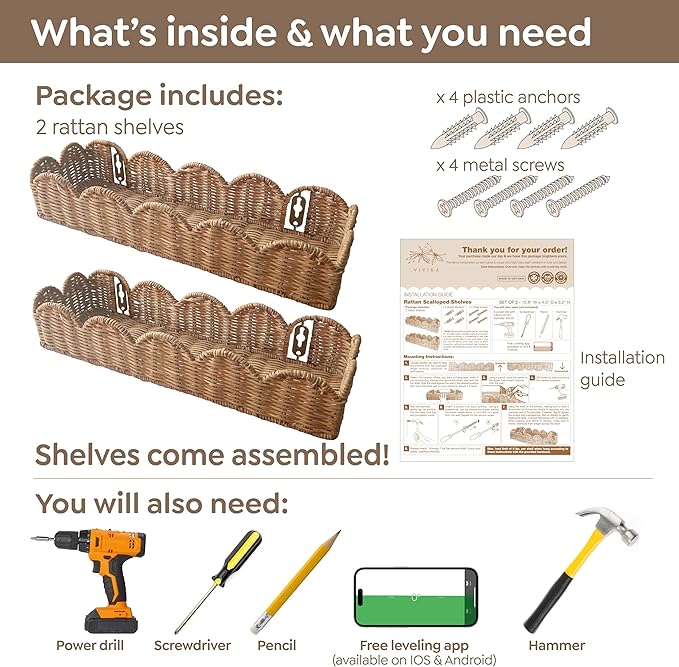 - No Assembly Required: Our wall bookshelf for kids comes ready to install. It includes mounting hardware and easy instructions. Now with a new improved mounting system, this wicker shelf saves time