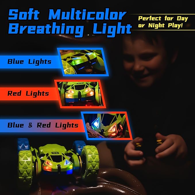 - TOYS THAT CHILDREN LOVE: In addition to the basic skills that ordinary remote control cars should have, stunt flips and double-sided driving will make it very easy to climb over small obstacles or around them and freed the car from the annoyance of model car rollovers.It will offer an exciting and versatile experience for kids. Nice presents for kids ages 6 to 12.