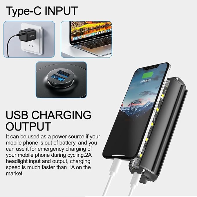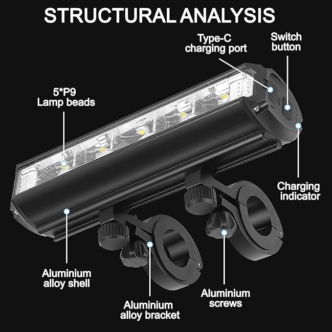 - 【Type-C Charging & Long Battery Life】The rechargeable bicycle headlight supports convenient charging via type-C cable, compatible with all devices featuring USB ports. With a battery life of up to 8 hours, it's the great choice for extended night rides and mountain biking adventures.