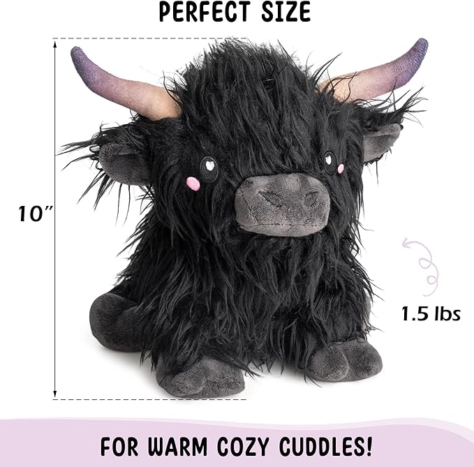 - 🐮 EXPERIENCE PEACE AND EASE - Our adorable silky soft highland cow can be used hot or cold! Made with premium quality materials and is the perfect size for warm peaceful snuggles, even for adults! Quality packed at 1.5 lbs for an ultimate cozy experience.