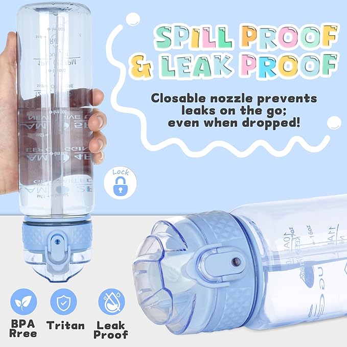 OLDLEY 17oz Kids Motivational Water Bottle, Leak-Proof Tritan BPA-Free, Reusable for School Girls & Boys, Silicone Straw, Baby Blue